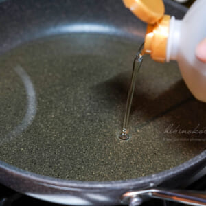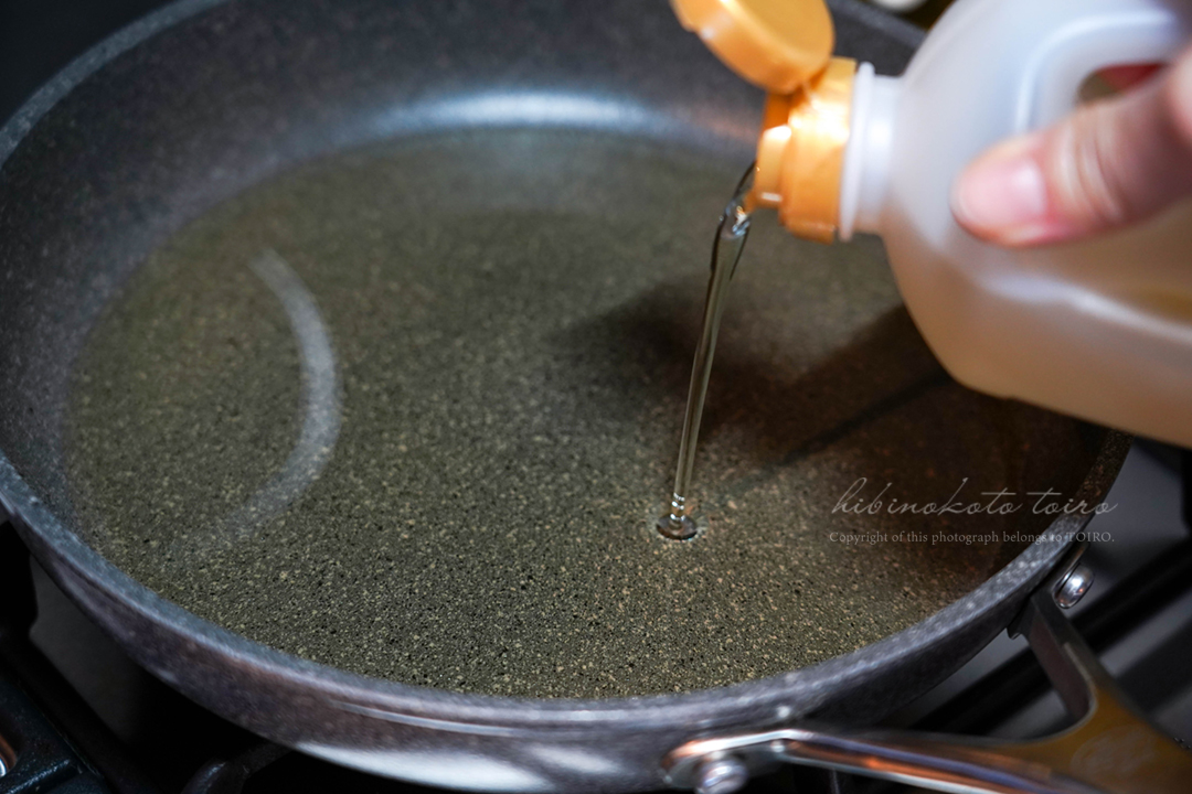 キッチンペーパーでしっかり水気をふき取る。(水気が残っていると油が跳ねるので丁寧に拭き取る)