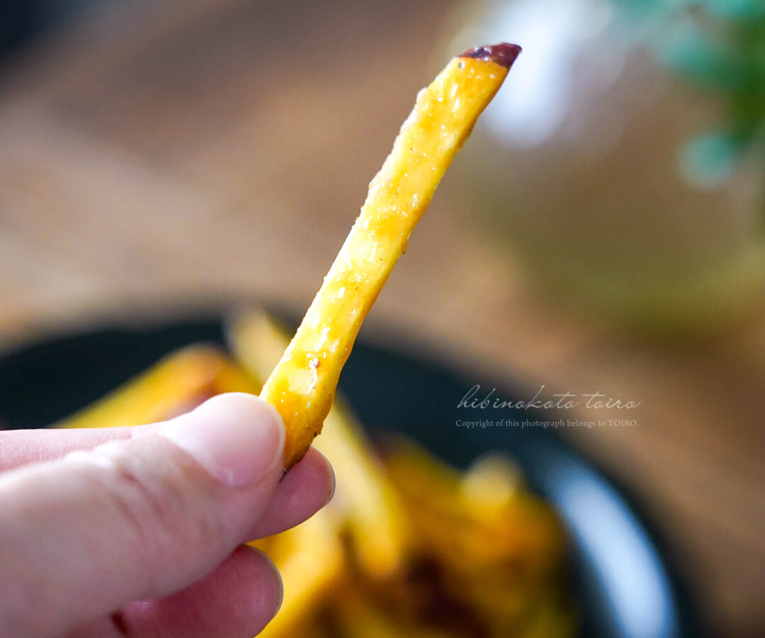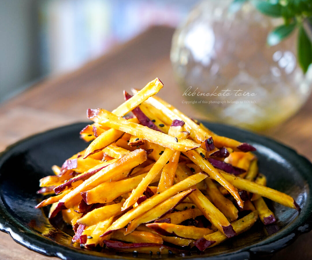 さつまいもがカリカリ、ほっくり!噛めば噛むほど味が出るとはこのことか!ときっとうなることでしょう。甘塩っぱい蜜をまとったさつまいも、めちゃくちゃ美味しいのでぜひ作ってみてください。大人も子どもも食べる手が止まらなくなります。笑