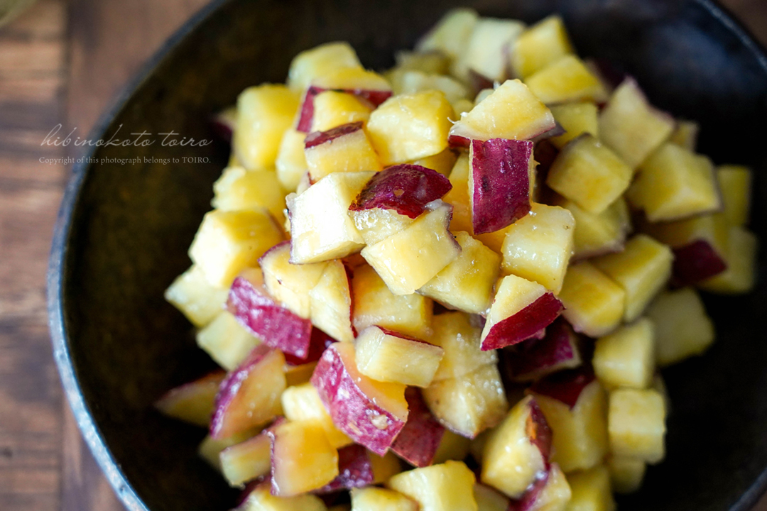 さつまいもをシンプルな材料でほくほく&つやつやに仕上げた、万能グラッセです。そのままおやつにしても、お弁当の彩りに入れても、パンやお菓子のアレンジにも大活躍。
