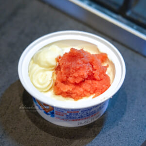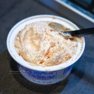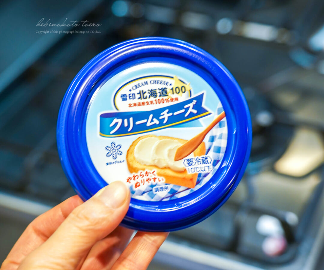 ●通常のクリームチーズを使う場合は、必要分をボウルに取りだし、常温に戻してから使うか、耐熱容器に入れてレンジで20秒ずつ加熱しながら柔らかくなるまで練ってから使うと混ぜやすいです。