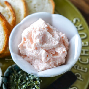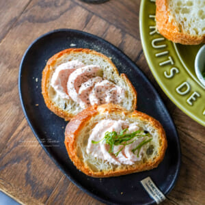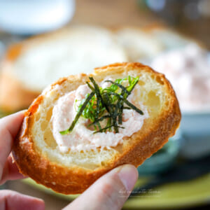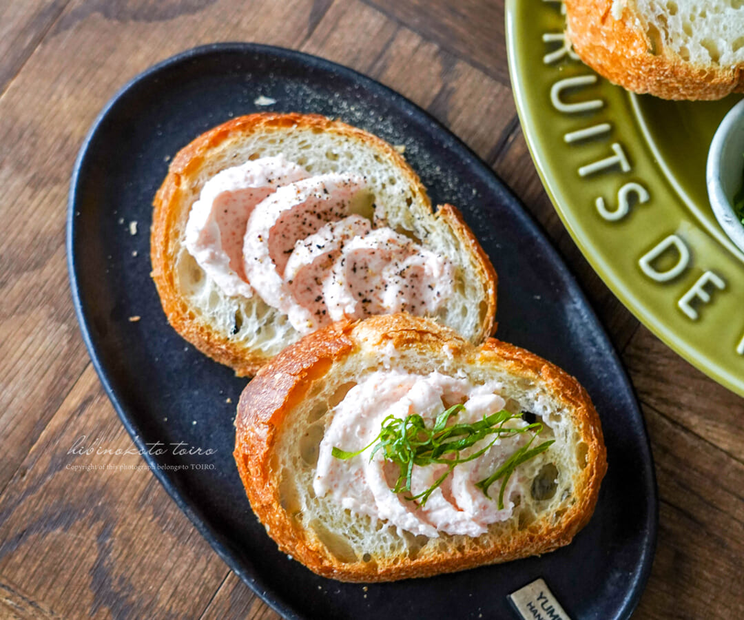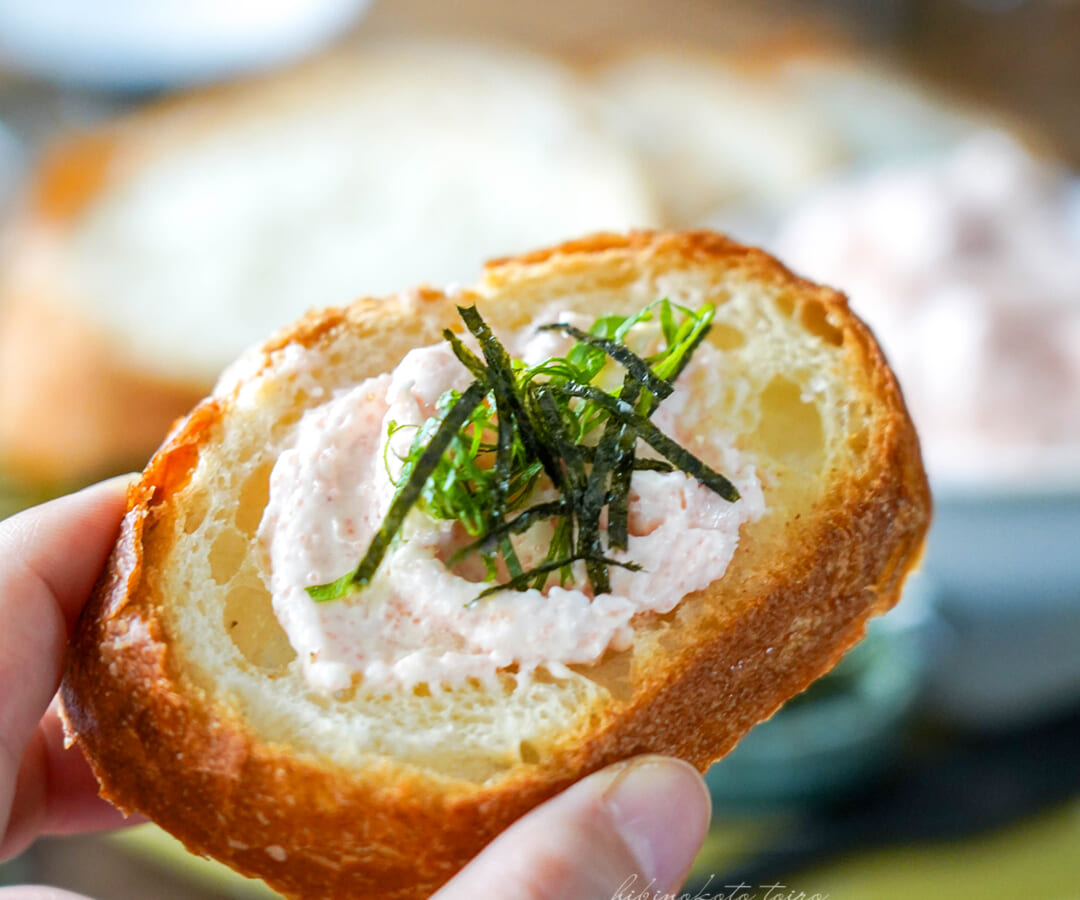 間違いない組み合わせ!食事系バゲット&クラッカーを楽しむならこれ。材料を混ぜるだけ。刻み海苔や大葉をトッピングすることで、より風味豊かになります。パーティーやお酒のおつまみにぜひどうぞ。